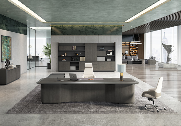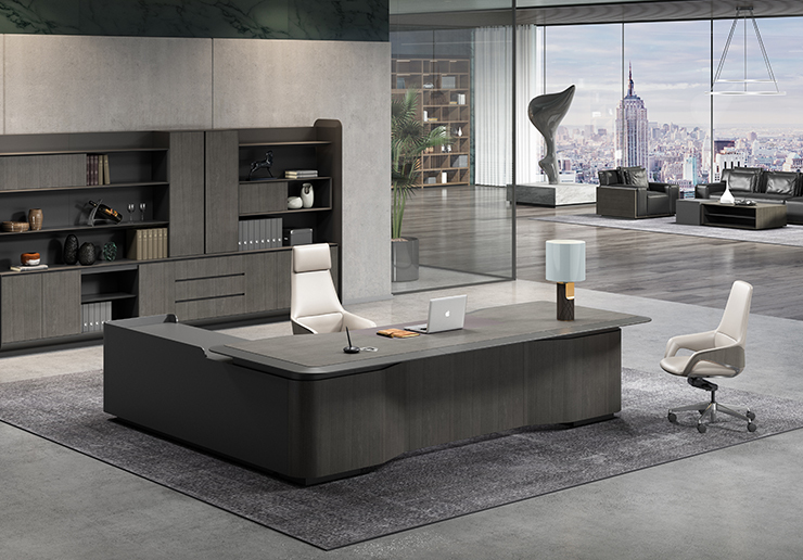 4.桌面加厚至4cm,中纖板基材,四周倒斜角處理,內(nèi)嵌銀絲梨木裝飾;封邊采用五底三面油漆封邊工藝;線槽位鑲嵌卡拉白色巖板,美觀精致紋理清晰;寫字位選用優(yōu)質(zhì)超纖皮革飾面;